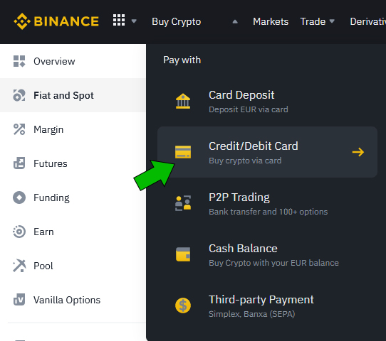 Now You just have to pay the first purchase with your bank card. If You have never used Binance, then of course it requests Your bank card details.